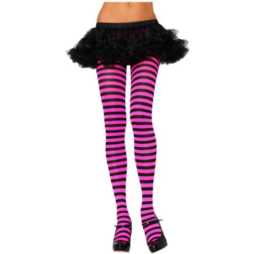 lack and fushsia nylon striped tights.One size fits most women.